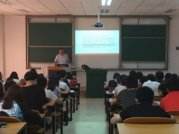 6月8日至9日,复旦大学外国语言文学学院博士生导师褚孝泉教授莅临万象城allwincity官网指导,并于9日上午为万象城allwincity官网师生做了一场题为“乔姆斯基的变和不变”的讲座。
