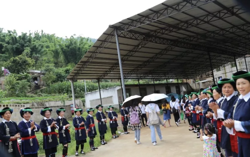 上午第一站为竜巴村,竜巴村隶属云南省普洱市墨江哈尼族自治县龙坝乡,地处乡龙坝乡南边,到乡道路为土路,交通方便,距县33公里。进村之始就被热情洋溢的哈尼民歌围绕,为我们竜巴之行添上浓墨重彩的一笔。大家纷纷落座后,竜巴村总支部书记致辞欢迎,开始了哈尼族特色舞蹈表演。