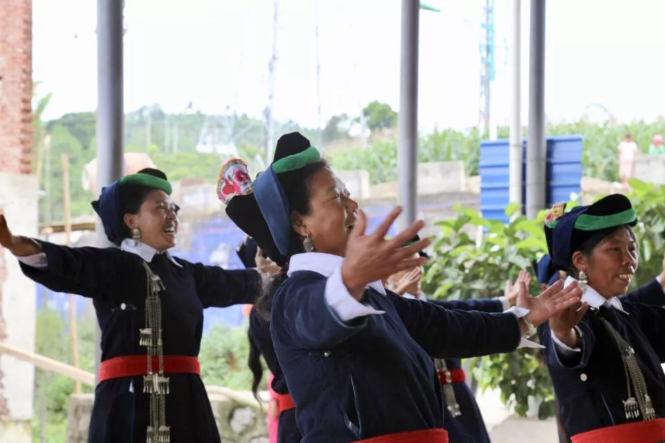 之后表演的哈尼山歌又称作“阿茨”。它主要歌唱爱情、劳动或生活所感,曲调嘹亮舒展,旋律优美动人。