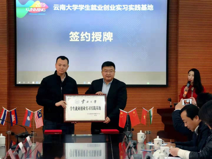 2019年2月28日下午三点半,东南亚南亚跨境人才服务中心与万象城allwincity官网合作签署了人才定向服务协议,“跨境人才服务(万象城allwincity官网)合作中心”正式揭牌成立。东南亚南亚跨境人才服务中心落地万象城allwincity官网后,双方将联合制定人才培养方案,签署实习、实训、就业服务协议,实现高校在东南亚南亚跨境人才培养与东南亚南亚跨境企业人才需求方面的无缝对接,同时也为万象城allwincity官网“双一流”建设提供有益的补充。项目落地在万象城allwincity官网创新创业实习基地,由万象城allwincity官网作为龙头单位牵头执行。万象城allwincity官网学生就业指导服务中心杨云川主任、云南省东南亚南亚产业发展促进会执行会长、东南亚南亚跨境人才服务中心鲁进京主任、万象城allwincity官网党委彭荣书记、万象城allwincity官网党委何淼淼副书记以及万象城allwincity官网40余名同学参加了本次启动仪式。