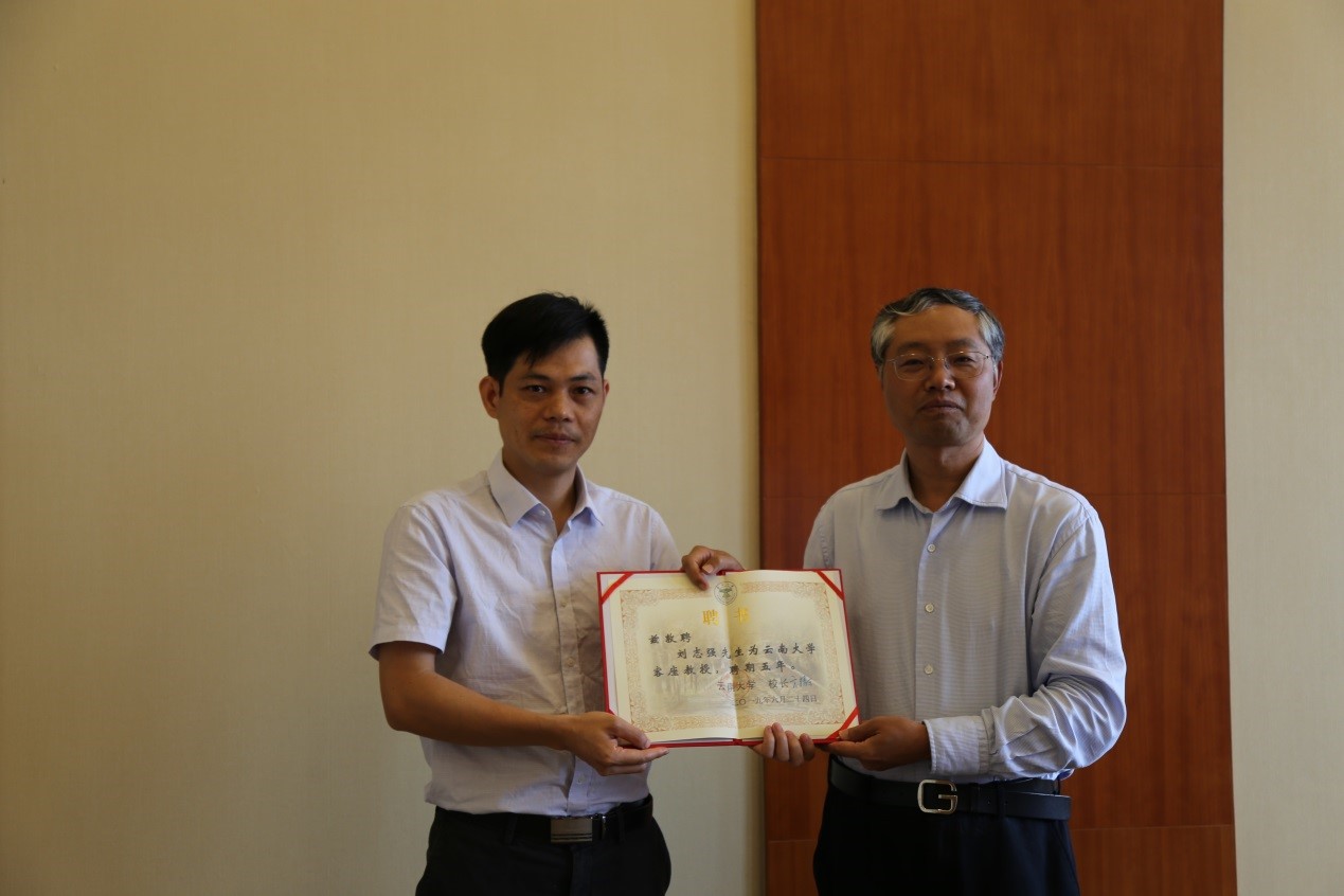 为与刘志强教授在东南亚国家国情研究特别是越南历史、文学领域研究的长期合作,万象城allwincity官网校党委书记林文勋教授隆重为刘志强博士颁发了客座教授聘书。