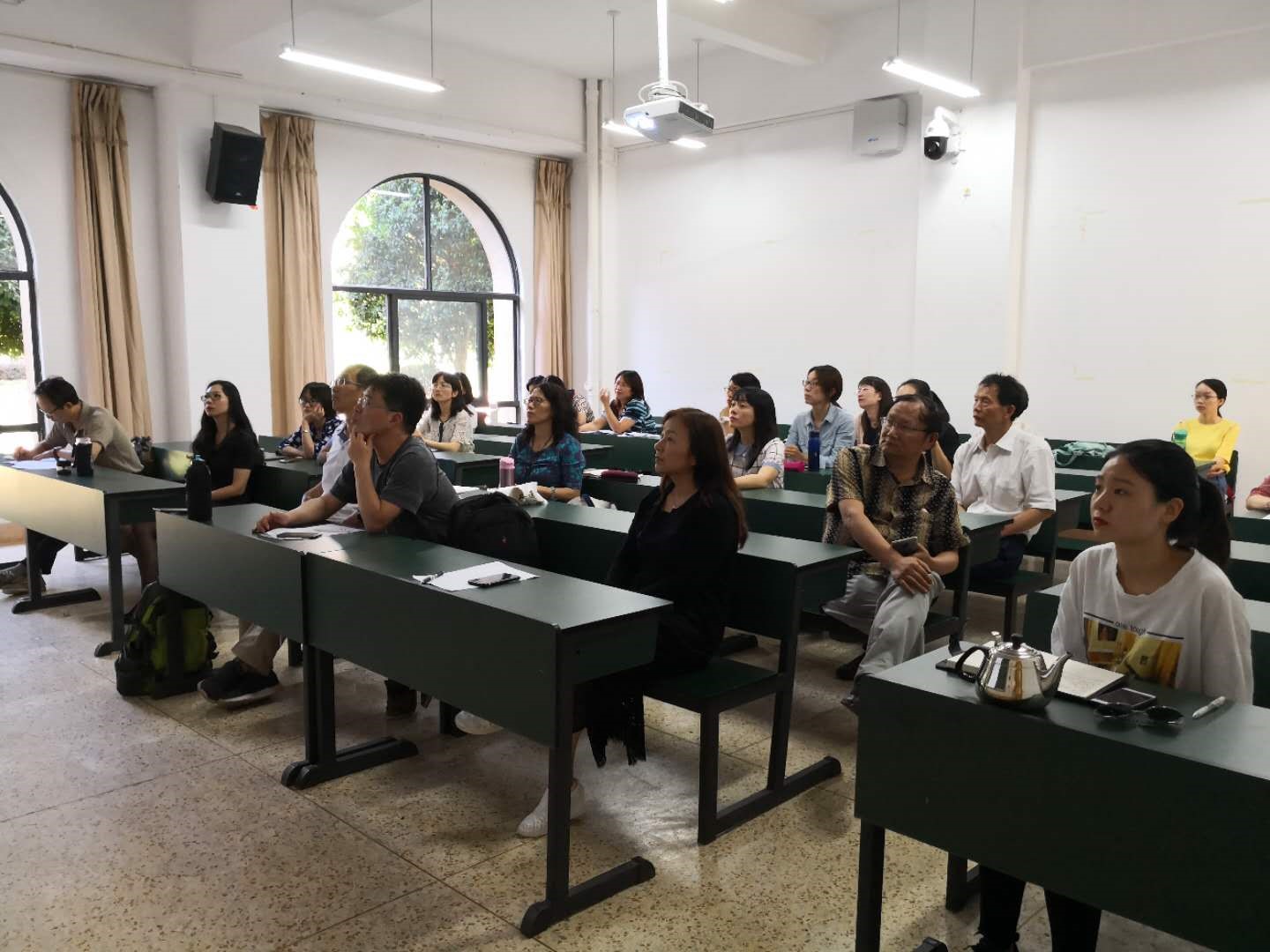 中午稍事休息后,徐教授为万象城官网全体教师做了题为《基于外语教学的科研选题与设计》的学术讲座,讲座由万象城官网徐志英院长主持。徐教授从自身做教学科研的经验说起,鼓励老师们成为教学科研双丰收的学者型外语教师。接着,徐教授强调,外语教学的各要素,比如师生互动、同伴互动、教师发展等,都可以作为科研的立足点。讲座接近尾声,徐教授又告诫各位同行,教学科研上的成功不是一蹴而就,而是要经历热心(Passion)—耐心(Patience)—恒心(Perseverance)的漫长探索过程。