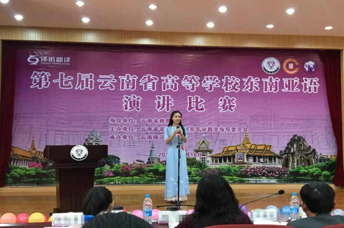 继今年9月底在“第九届全国大学生越南语演讲比赛”中获得优异成绩之后。11月16日,越南语系学生再创佳绩,在由云南省非通用语种类专业教学指导委员会主办、云南师范大学承办的“第七届云南省高等学校东南亚语演讲比赛”上获得高年级组第一名、低年级组第二名。