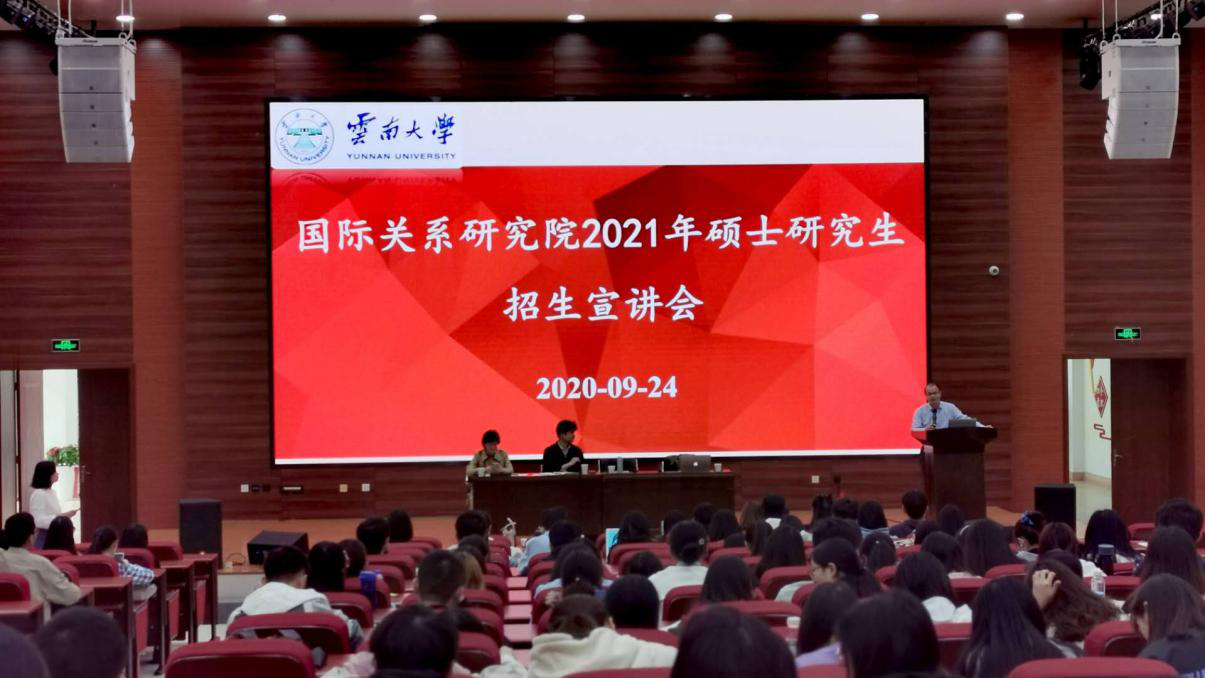 2020年9月24日下午,万象城allwincity官网国际关系研究院李涛、祝湘辉、冯立冰和邹怡四位老师莅临万象城官网,为万象城官网东南亚语言文化系、南亚语言文化系和英语系的众多师生宣讲了国关院研究生的招生情况。报告厅座无虚席,四位老师为大家作了详细的介绍和精彩的分享。