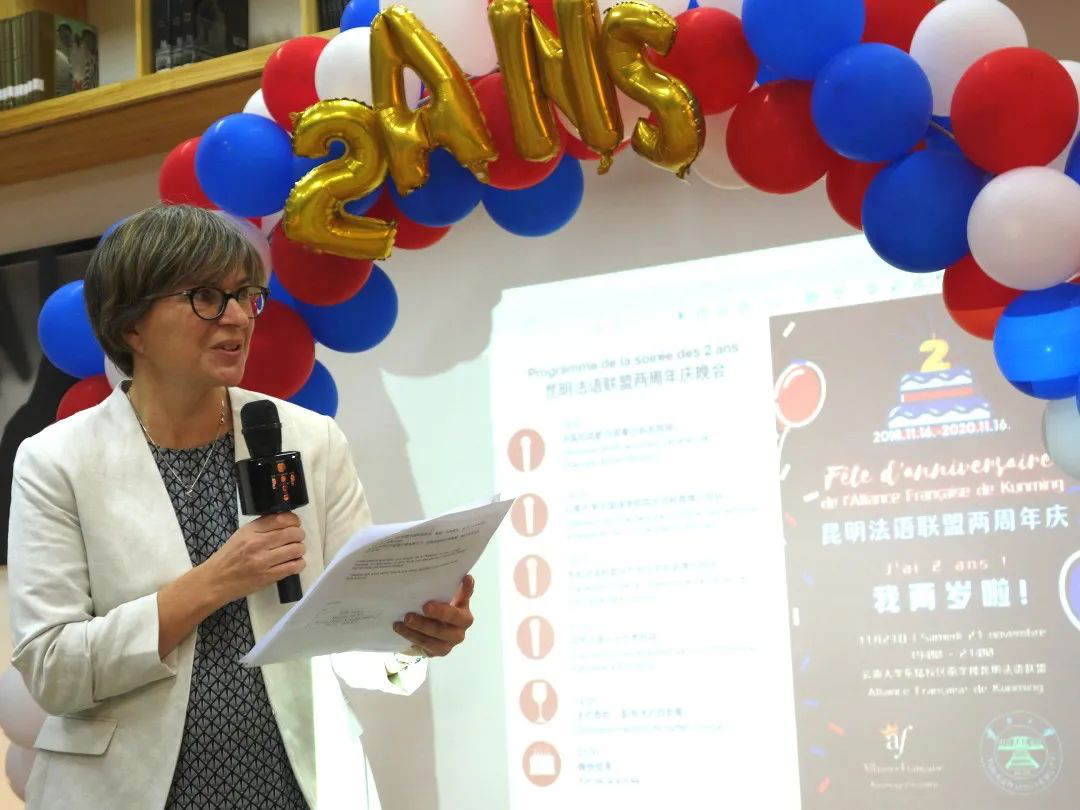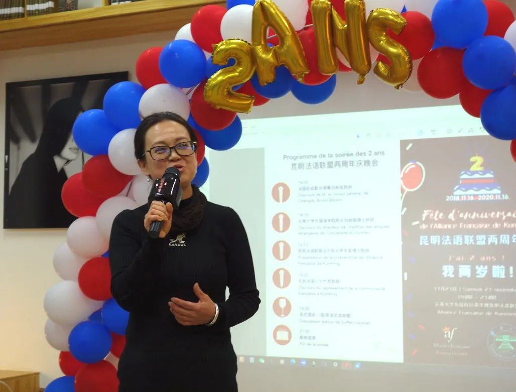 昆明法语联盟中方校长孙芳女士主持庆祝活动