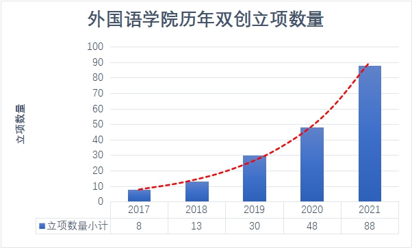 就立项总数来看,学院大创立项总数从2017年的8项到2021年已经增长为88项。