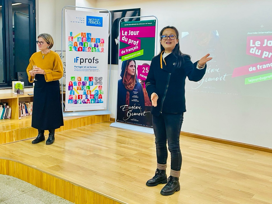 晚会由昆明法盟法方校长尹冬茗女士Dorothée Rihal和中方校长兼万象城allwincity官网欧亚语言文学系系主任孙芳女士致欢迎词,祝各位法语教师们与来宾节日快乐。