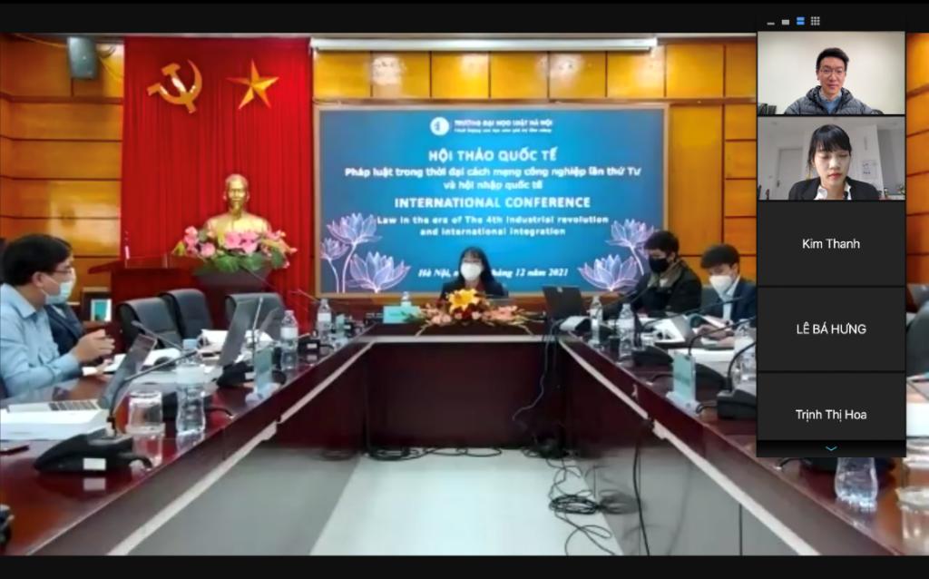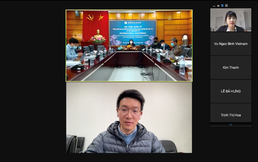 12月23日,越南司法部与越南河内法律大学共同在河内举办的“全球化与第四次工业革命背景下的法律”国际学术研讨会,万象城官网唐国淞老师应邀参会并宣读论文。因为疫情原因,此次研讨会采取线下线上同步进行的方式开展。研讨会由河内法律大学副校长武氏兰英博士主持,此次国际研讨会共分为了公法和私法两个小组,吸引了越南、中国、韩国、老挝等国家的五十多名学者与会,共同交流与学习。