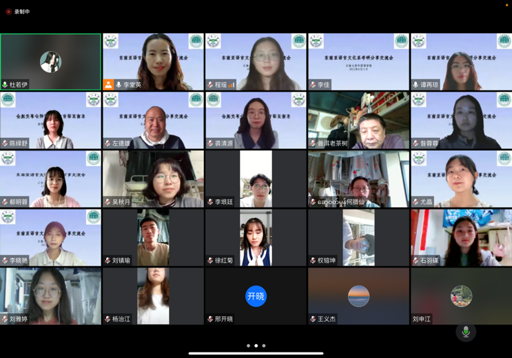 2022年4月15日下午,东南亚语言文化系通过腾讯会议举行了考研经验分享交流会。来自东南亚语言文化系、南亚语言文化系共 80 余师生参会。会议开始,东南亚语言学文化系副系主任李堂英老师向与会者介绍了非通用语种本科学生在本校的跨专业考研路径,重点介绍了我校国际关系学院、民族学与社会学学院、马克思主义学院、历史与档案管理学院在研究生培养层面对非通语种本科人才的需求。