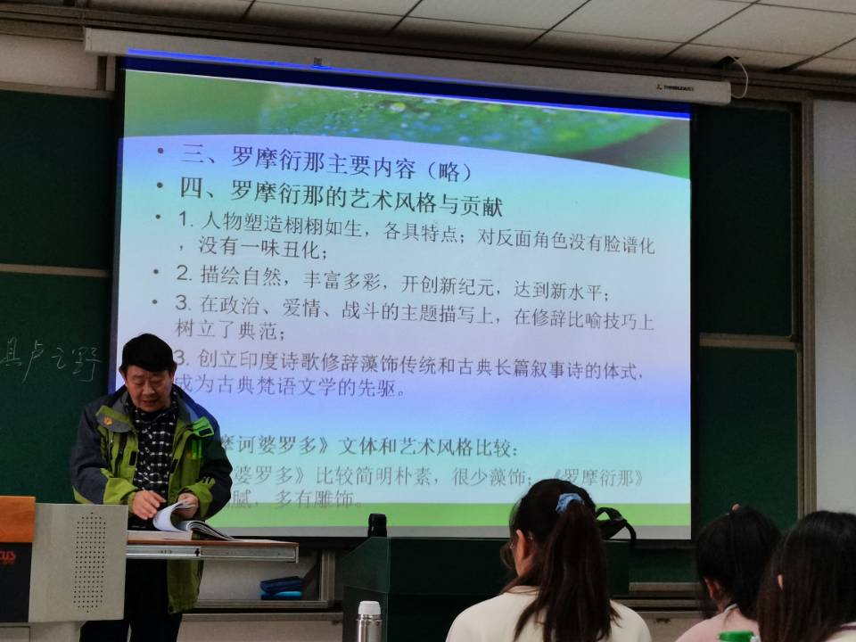 此外,印地语专业还两度聘请教育部高等学校外语教学指导委员会副主任委员姜景奎教授参与我校“校外名师讲学计划”,为印地语专业本科生授课,扩宽了学生的视野和知识面,加深了学生对印度历史和文化的了解。