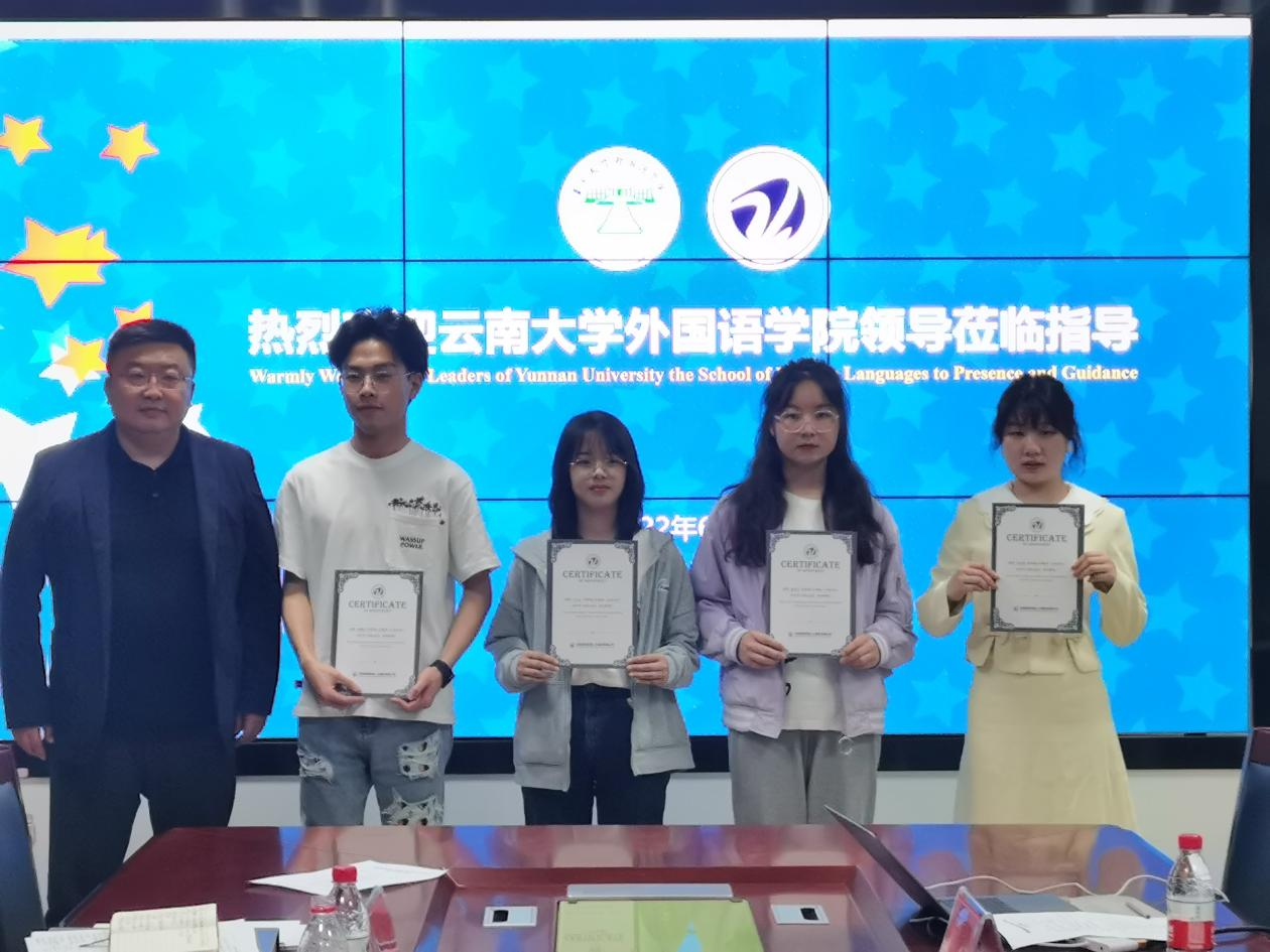 图6 鲁会长为跨境人才服务(云南)合作中心新一届学生团队发放聘书