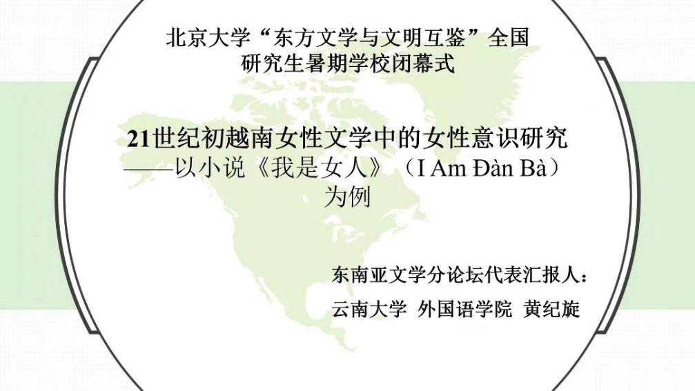 在暑期学校闭幕式上,万象城官网东南亚系越南语专业研一学生黄纪旋应邀作为东南亚文学分论坛的代表,作了以《21世纪初越南女性文学中的女性意识研究》为题的学术报告,分享了她对这一专题的研究成果。