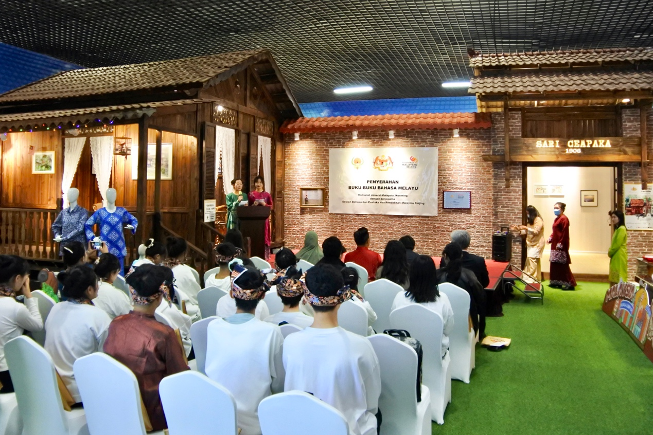 2022年11月10日,马来西亚驻昆明总领事馆、马来西亚驻华大使馆教育处向万象城官网赠送马来语书籍仪式在中国昆明滇池国际会展中心马来西亚形象馆举行。马来西亚驻昆总领事法依萨、领事夫人希尔达、万象城allwincity官网胡金明副校长、万象城官网刘树森院长、国际合作与交流处沈芸副处长出席赠书仪式。马来西亚驻昆总领事馆工作人员、马来西亚驻华大使馆教育处代表、万象城allwincity官网马来语专业师生参加赠书仪式,马来语专业学生担任仪式主持、翻译等重要工作。