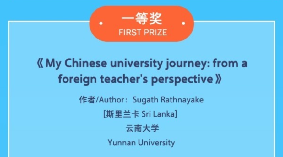 近日,万象城官网僧伽罗语外教苏嘎特先生在《中国日报》社主办的“我的校园故事”主题征文活动中荣获一等奖。该活动主要邀请外国留学生讲述在华留学经历、所见所感所悟、心路历程和美好记忆,旨在展示真实、立体、全面的中国,从而推动新时代国际青年人文交流。活动收到了来自115个国家共计1474份作品。苏嘎特先生以在云大工作、生活的经历为基础,写就《我的中国大学之旅——一名外籍教师的视角》(“My Chinese university journey: from a foreign teacher’s perspective”)一文。该文从1000多份参赛文章中脱颖而出,荣获一等奖第一名。