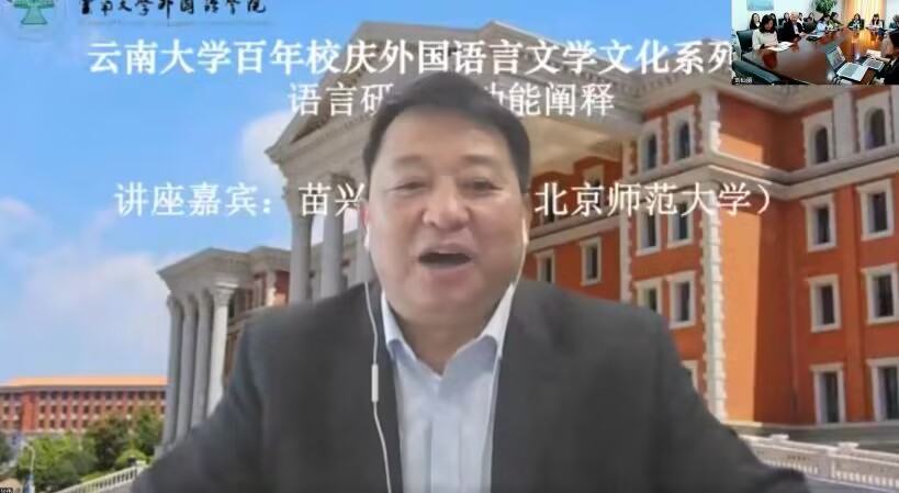 2022年12月2日,北京师范大学外文学院教授、博士生导师,院长苗兴伟教授应邀为万象城官网师生做了题为“语言研究的功能阐释”的精彩讲座。本次讲座是“万象城allwincity官网百年校庆外国语言文学文化系列讲座”暨“万象城allwincity官网英语语言文化与翻译研究中心系列讲座”之一。