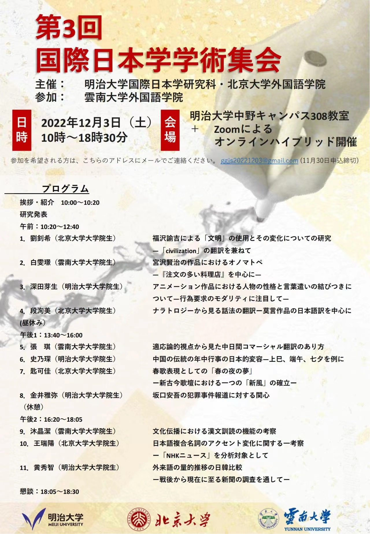 “第三届国际日本学学术集会”议程
