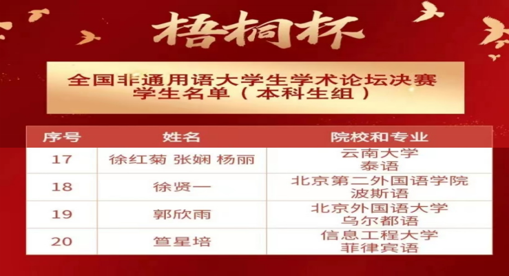 第二届“梧桐杯”全国非通用语大学生(研究生)学术论坛优秀奖获奖名单(本科生组)