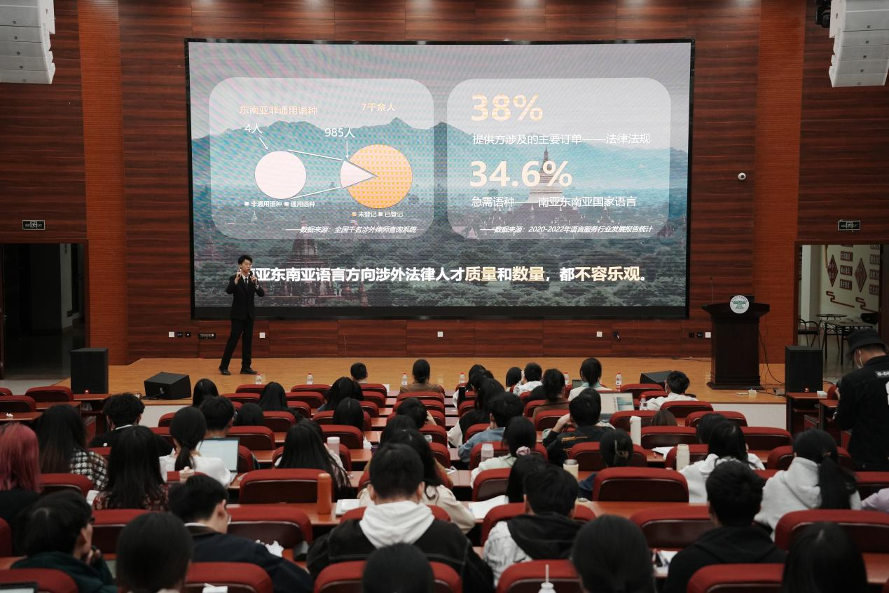 2022年省级金奖项目《南亚东南亚企业顾问——您的全过程法律管家》团队成员为大家进行项目展示。他从该项目的项目介绍、服务对象、服务模式、智能检索数据库、服务特色、团队成员和指导老师、项目成果等多个方面,为同学们全方位展示了一个成熟的“互联网+”创新创业项目的全貌,为后续参赛的同学提供了借鉴案例。