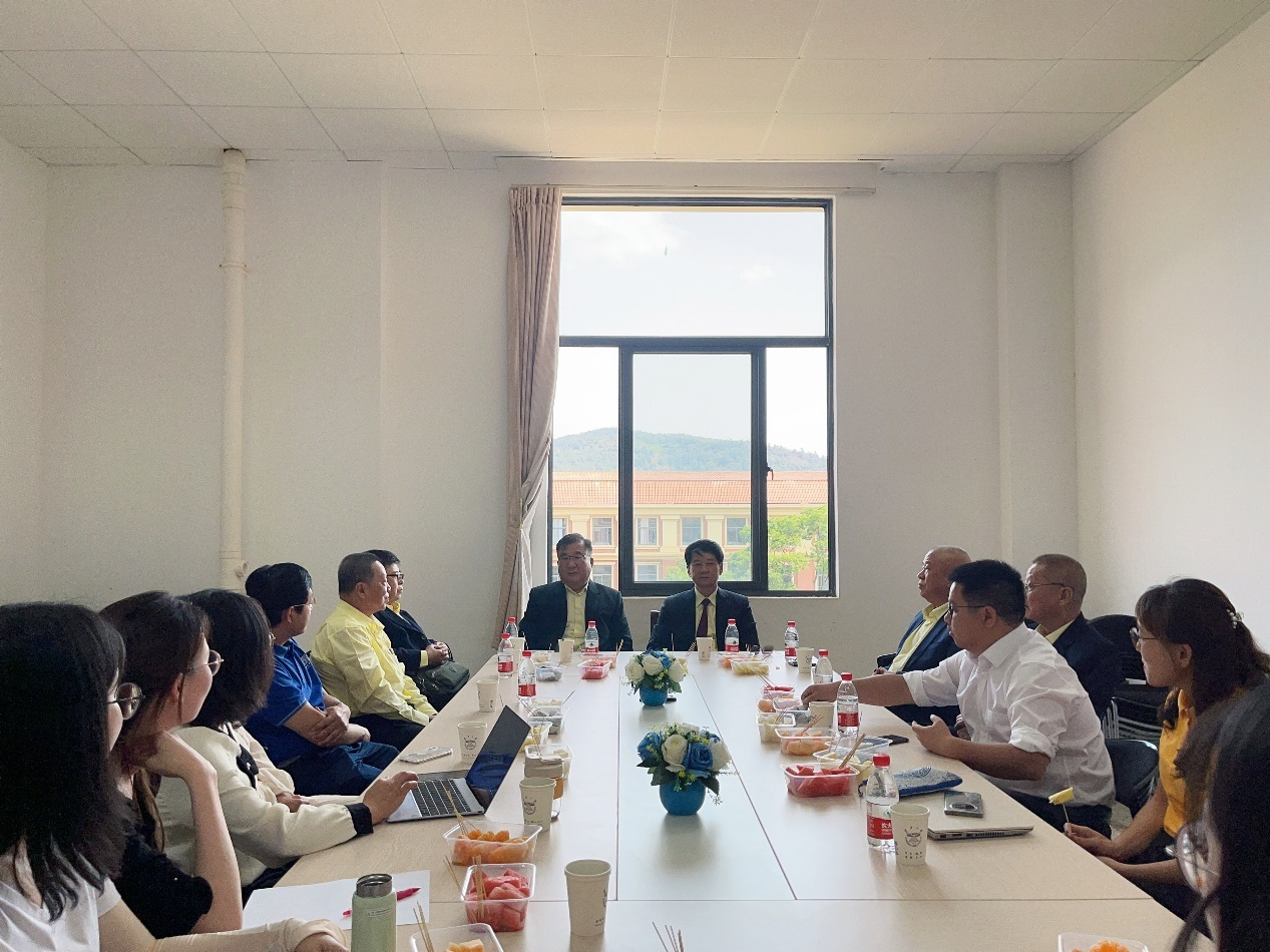 2023年4月19日下午,缅甸曼德勒福庆学校董事长林文章一行、孔子课堂缅方校长李祖清老师和中方主任钟小鑫老师与万象城allwincity官网缅甸语教研室师生开展座谈。