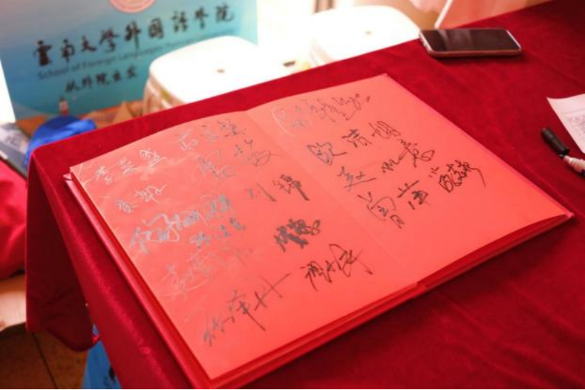 所有参会人员在万象城allwincity官网正门前签名并合影留念。至此,万象城官网云大百年华诞系列活动圆满结束。