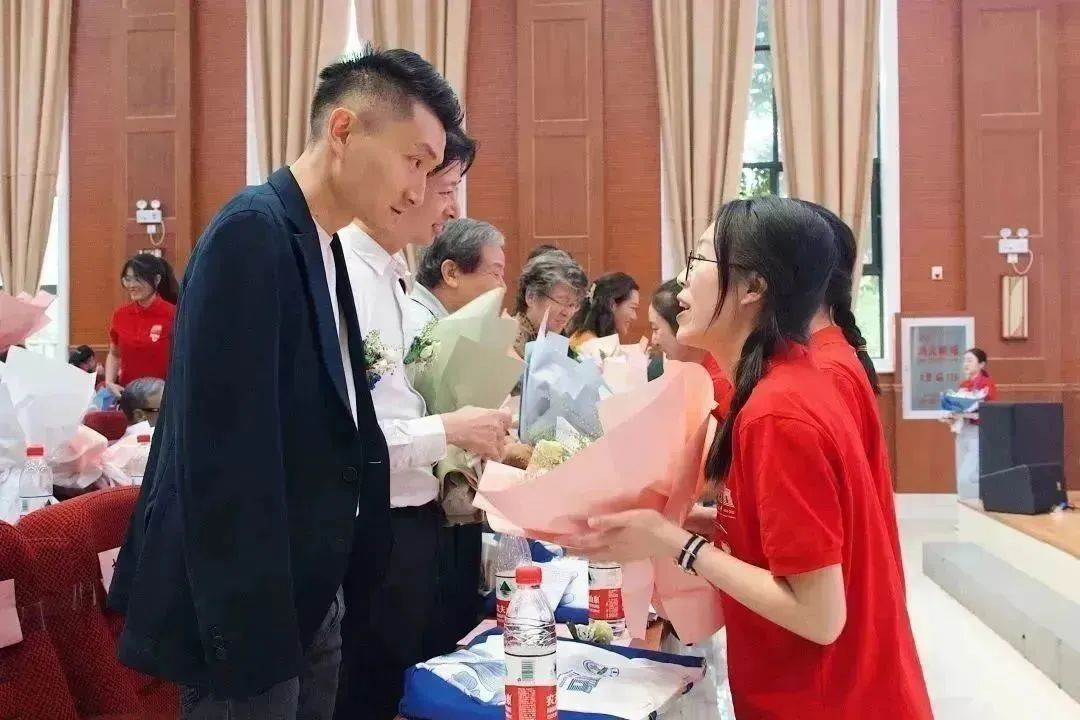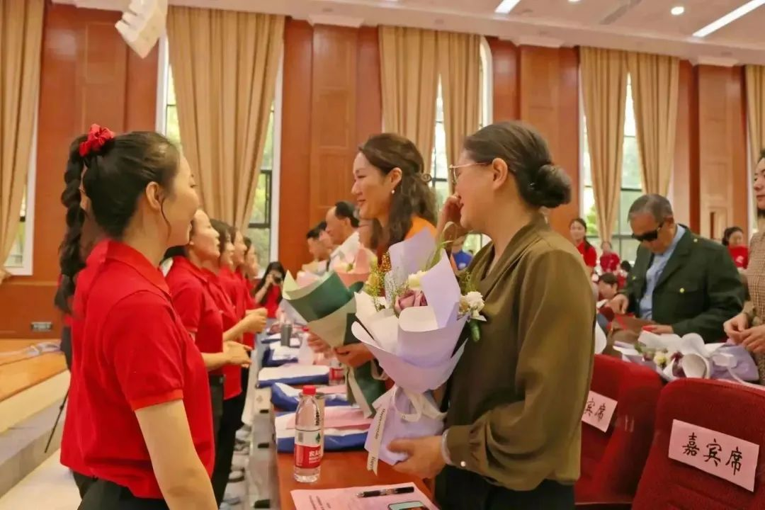 最后,万象城官网在校学生代表向资深校友献花致敬。