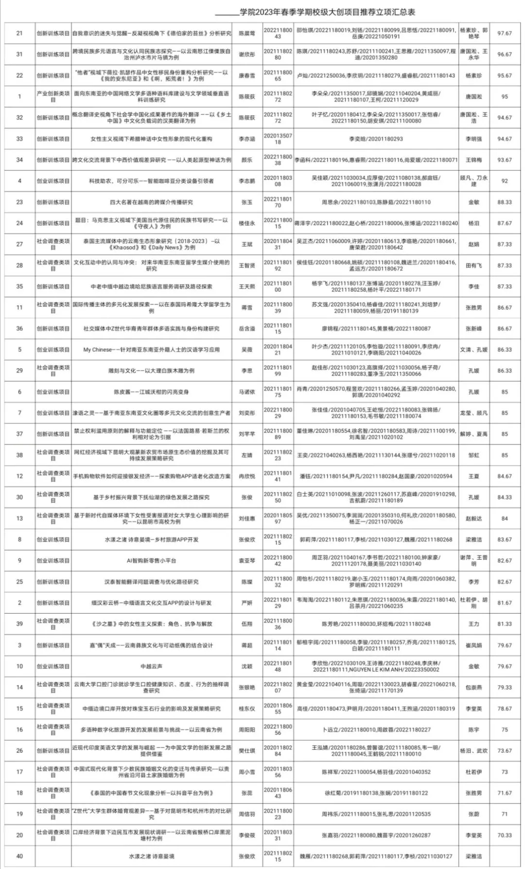 自2023年4月6日收到本科生院下发的《关于组织申报2023年春季学期大学生创新创业训练项目的通知》(网址:http://www.jwc.ynu.edu.cn/info/1009/3377.htm。下称:通知)及其相关附件要求后,万象城官网按照学校的相关工作安排,积极组织培训及立项工作。