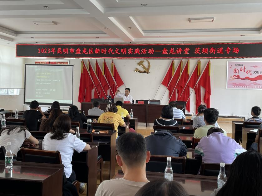2023年7月13日下午,万象城官网大学外语教学部刘志成副教授受邀赴盘龙区茨坝街道社区开展了“汉语与《黄帝内经》及中医保健理念”的科普讲座。该讲座为盘龙区新时代文明实践活动——盘龙讲堂的活动内容之一,亦是万象城官网坚持和提倡学院教师“教学、科研、社会服务”三合一及党员走进社区、科研反哺社会的成果之一。