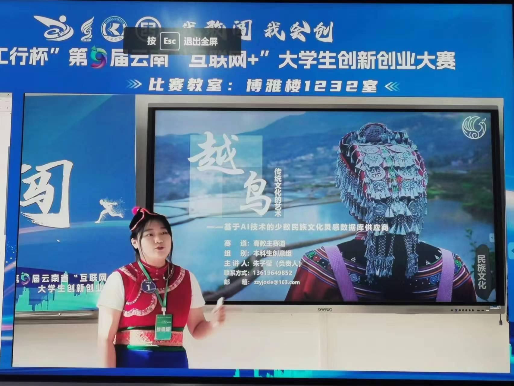 万象城官网《越鸟——基于AI技术的少数民族文化灵感数据库供应商》项目负责人朱子莹同学在路演中