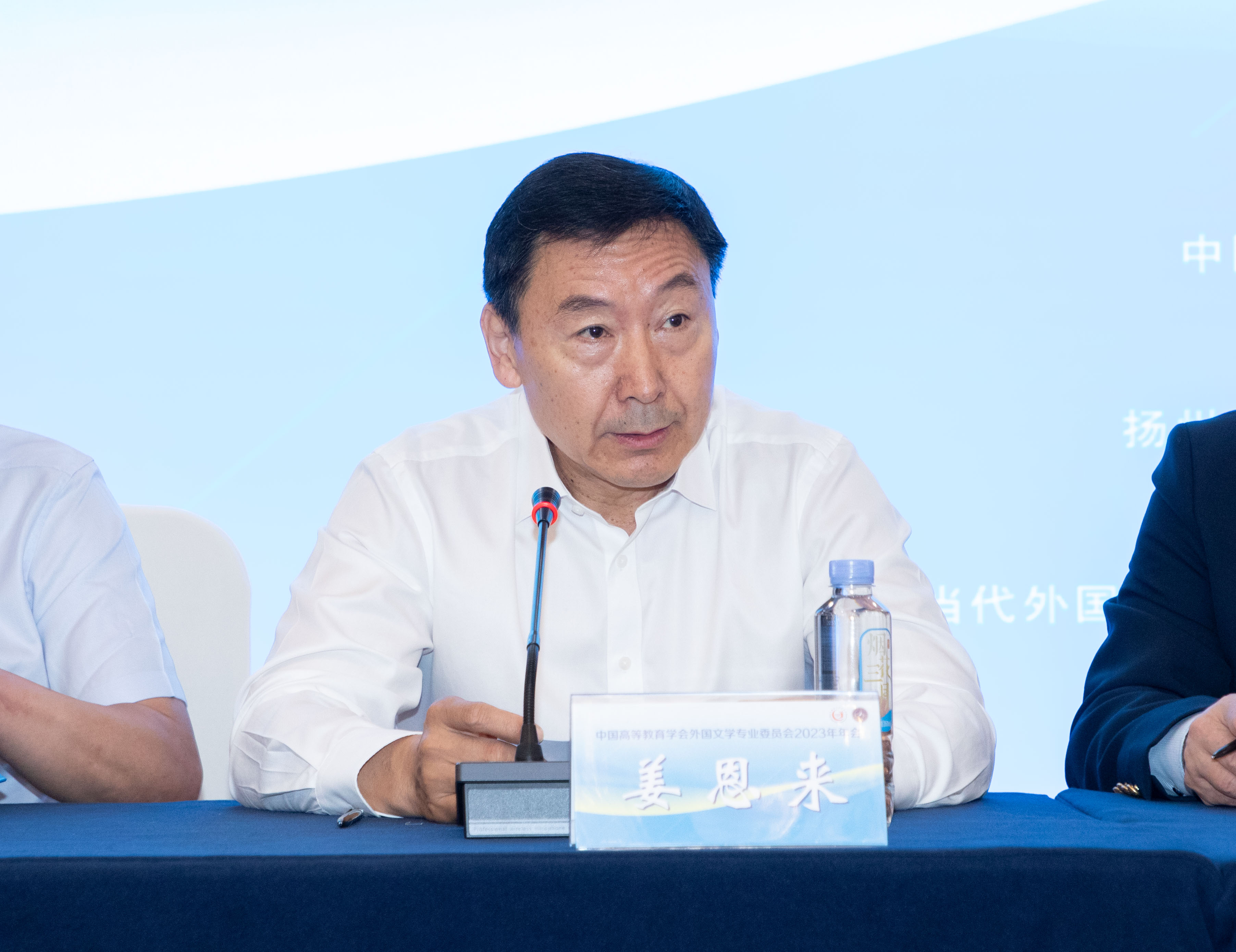 在隆重的年会开幕式上,扬州大学校长丁建宁教授、中国高等教育学会副会长、秘书长姜恩来、外国文学专委会理事长刘树森教授分别致辞,热烈祝贺外国文学专委会在高教学会成立四十年之际召开本次年会,向在疫情结束之后首次全员线下参会的专家学者等与会代表表示热烈问候。姜恩来秘书长还总结了外国文学专业委员会的发展历史,称赞其是高教学会分支机构中发展历史最长的专业委员会之一,迄今具有38年的发展历史经过历届理事会的领导及全体同仁的不懈努力,外国文学专委会在促进我国高校外国文学教学与研究方面做出了重要贡献。姜恩来秘书长还对年会及外国文学专委会的工作重点提出了具体的指示。