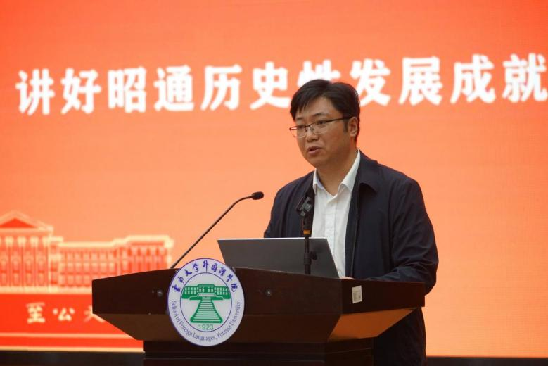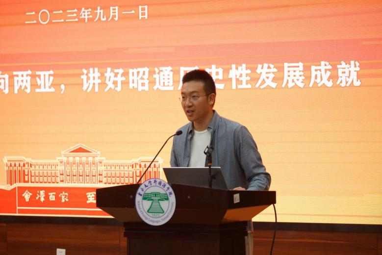 万象城allwincity官网党委书记王益广老师为会议致辞。王书记首先就师生观察团亲赴昭通实地考察的意义进行了概括性总结,并对本次调研活动的开展表示了肯定与赞扬。王书记强调,我们每一个调研活动的开展都要聚焦党的十八大以来党和国家取得的历史成就以及历史性变革。本次调研活动的开展就是以中国大地为课堂、以脱贫攻坚历史性成就为现实教材、面向南亚东南亚讲好云南发展故事的一次很好的实践。随后,王书记讲述了自己参与社会实践的亲身经历,让大家感受到了社会实践活动的意义。
