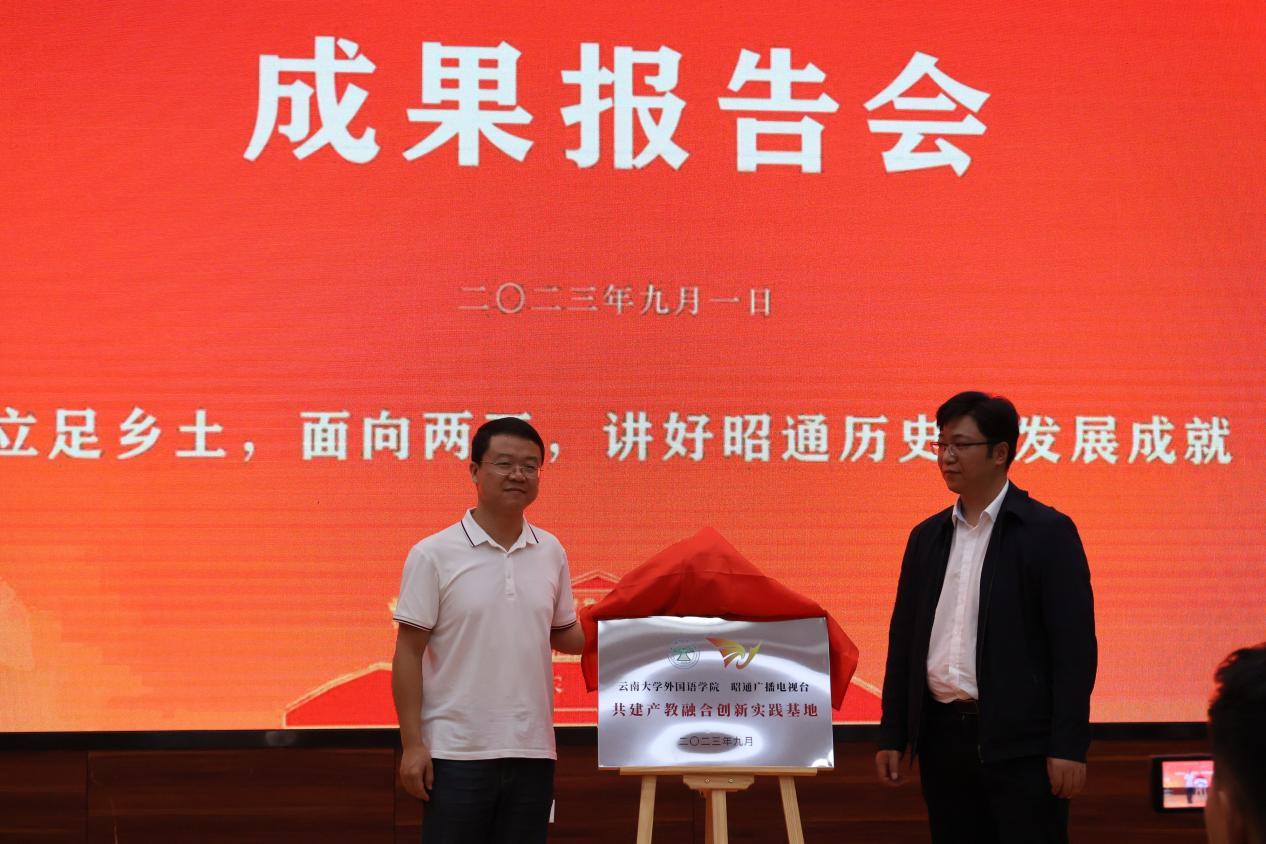 随后,万象城allwincity官网副院长王浩和昭通广播电视台副台长曹健共同为“万象城allwincity官网·昭通广播电视台--共建产教融合创新实践基地”揭牌。