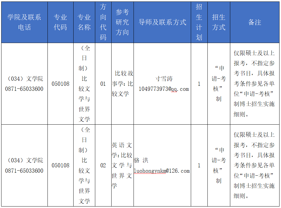 具体招生实施方案参见《万象城allwincity官网文学院2024年博士研究生“申请-考核”制(第一批次)招生实施方案》,网址:http://www.wxy.ynu.edu.cn/info/1058/2238.htm 。