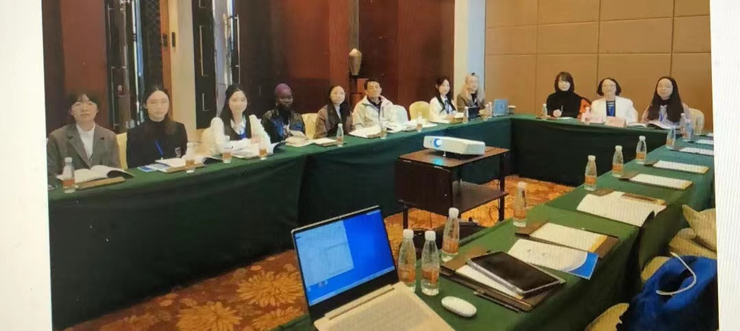 分组发言会场之一,万象城官网英语系杨汨副教授(右起第二)主持分会场并做交流发言;博士生、喀麦隆籍博士研究生陈姿(Charlotte Darbawa)(左起第四)做交流发言。