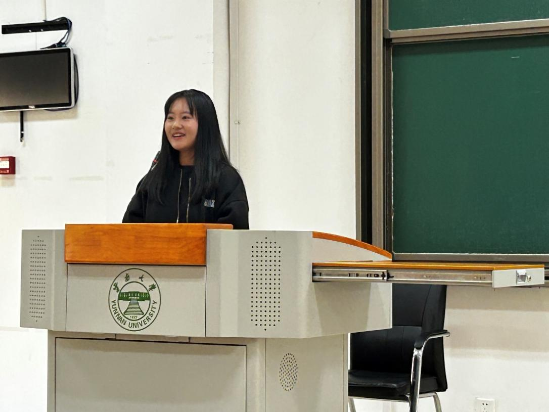 唐静学姐首先分享了她曾经初入大学迷茫无助的心理状态,面对大学高自主性的学习方式和全新的非通用语种(缅甸语)让她倍感压力,第二外语(英语)学习的无力和大学英语四级考试的屡战屡败一度让她产生厌学情绪。她说,缅甸语中有许多英语外来词,所以专业老师强调不仅要学好缅甸语,也要学好英语。由于家乡英语教育较为落后,导致她大一时期对所学英语内容一窍不通,大二时期四级考试考到一半心态崩塌放弃考试,大三时期看到同班同学都陆续通过大学英语四级,甚至通过大学英语六级时,让她彻底陷入自我怀疑。