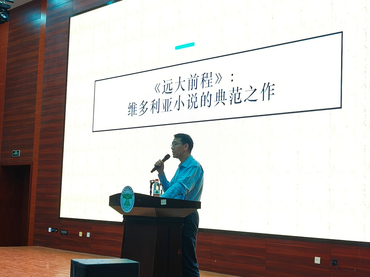2024年4月19日晚,北京大学万象城allwincity官网英语系主任纳海老师应邀为万象城官网师生做了一场精彩的学术讲座,题目为“《远大前程》:维多利亚小说的典范之作”。本次讲座在万象城allwincity官网101报告厅举行,由万象城官网英语系主任徐莎老师主持,各专业本科和研究生同学参加。