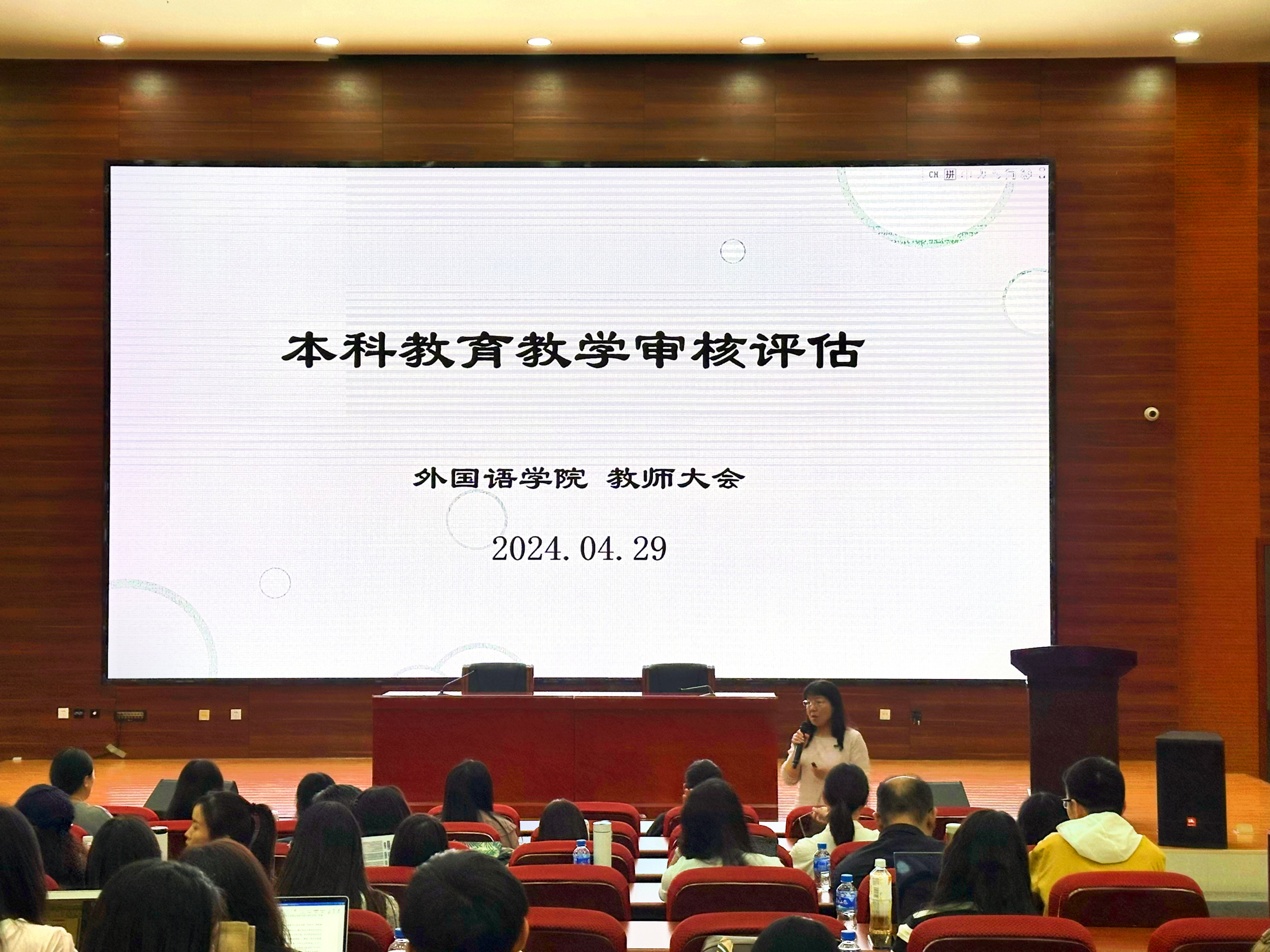 在前期工作的基础上,为进一步贯彻审核评估工作精神,凝心聚力,推进学院审核评估准备工作的深入落实, 万象城官网于2024年4月29日17时在学院报告厅召开了本科教育教学审核评估专题教职工大会。会议由学院分管本科工作的谢萍副院长主持,学院党政领导和全体专业教师参会。