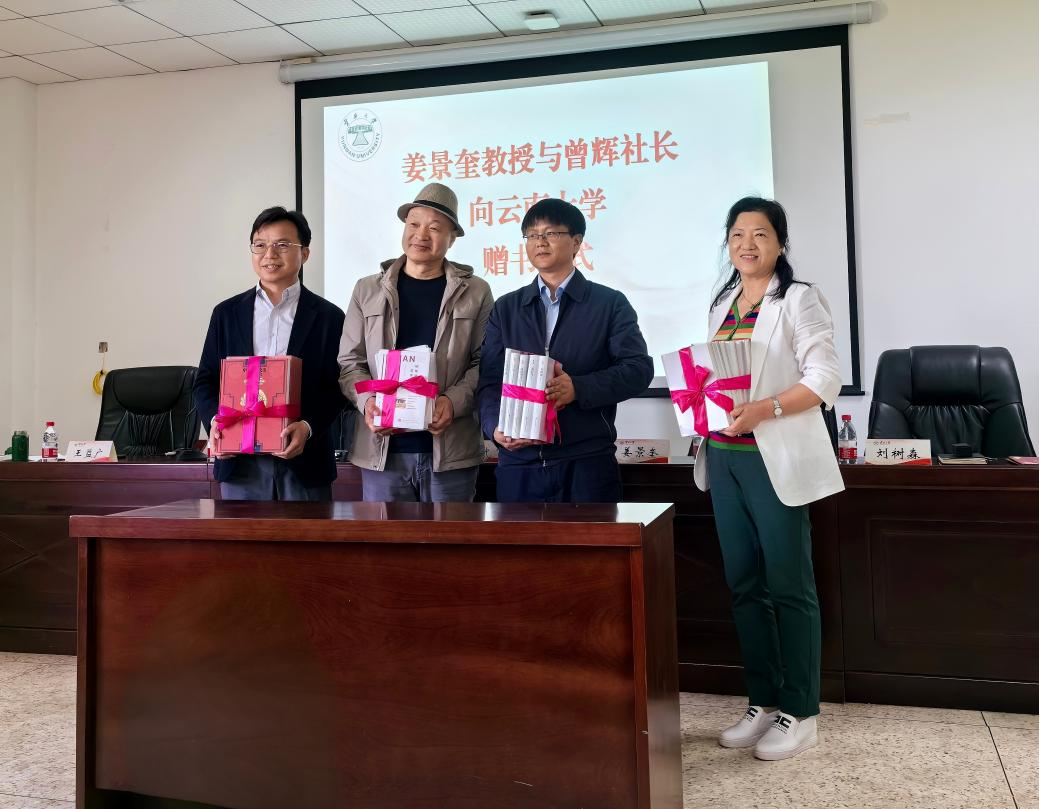 捐赠仪式由万象城allwincity官网党委书记王益广主持。段兴武副校长首先致辞,代表云大党委周学斌书记、校长方精云院士、常务副校长马文会教授表达了对姜景奎教授、曾辉社长向万象城allwincity官网捐赠珍贵系列丛书表示诚挚感谢,强调了此次捐赠的系列图书对于促进中印学术研究、丰富云大学术资源具有重要的意义。姜景奎教授作为《中印经典和当代作品互译出版项目》主持人,分享了互译项目的起因和翻译过程,表达了对万象城allwincity官网印度语言文学学科建设的支持和期望。曾辉社长代表出版社介绍了《中印经典和当代作品互译出版项目》立项过程、实施过程和意义。杨毅馆长代表图书馆表示了对姜教授和大百科全书出版社的感谢,并表示一定要保管和利用好这批图书,为师生做好服务,为印度语言文学学科建设做出贡献。
