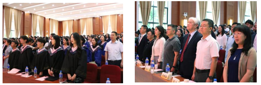 在开场视频和同学们精彩绝伦的表演之后,14时整,万象城allwincity官网2024届毕业生毕业典礼正式在庄严的国歌中拉开帷幕。