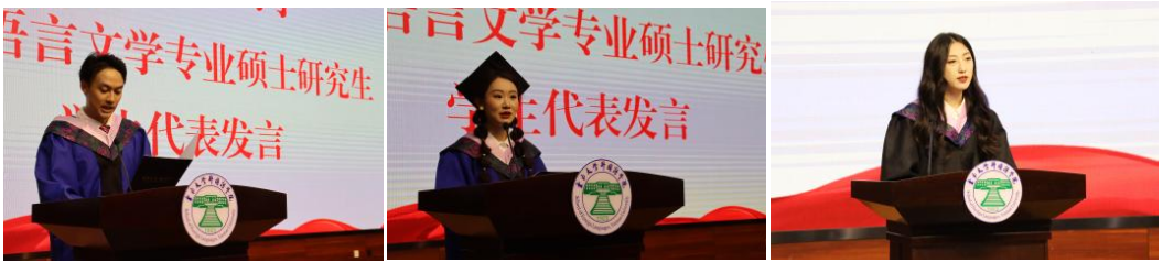 英语语言文学系崔凤娟老师、法语语言文学系王夏老师、日语语言文学系罗椿咏老师、东南亚语言文化系寸雪涛老师和文清老师、南亚语言文化系周津亦老师先后发言,饱含对毕业生们的祝福和期待。