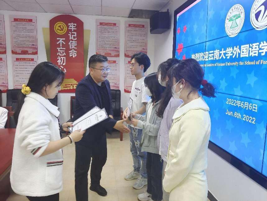 图6 鲁会长为跨境人才服务(云南)合作中心新一届学生团队发放聘书