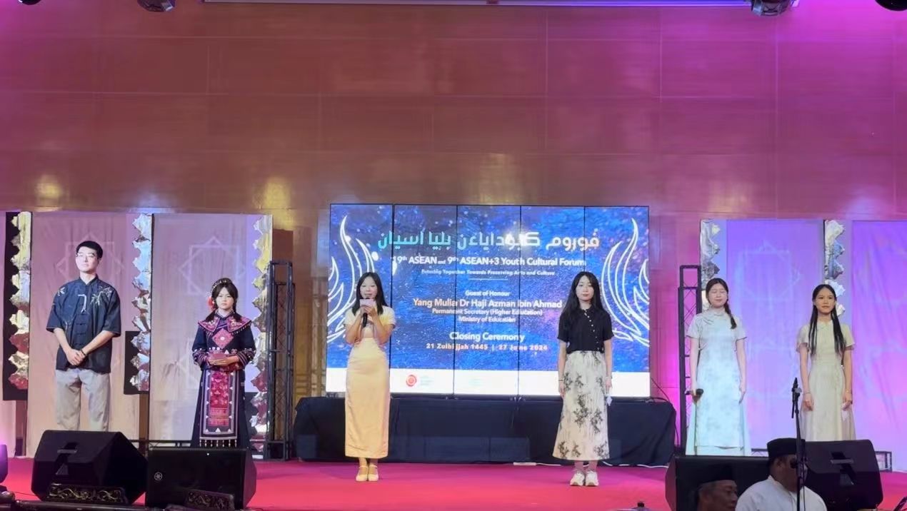 2024年6月23日至28日,第19届东盟暨第9届东盟10+3青年文化论坛在文莱举行。本次论坛以“共创未来,保护艺术与文化”为主题,以东盟各国、中、日、韩青年之间的文化艺术交流为载体,开展了丰富的文化交流活动,为各国青年相知相亲搭建了友谊平台,展示了世界艺术和文化的多样之美,促进了各国青年对各国文化艺术的了解、欣赏和尊重,为推动东盟各国、中、日、韩携手发展和共同进步发挥青年力量、增添青春色彩。来自东盟、中、日、韩共10个国家的132名师生参加了论坛活动。