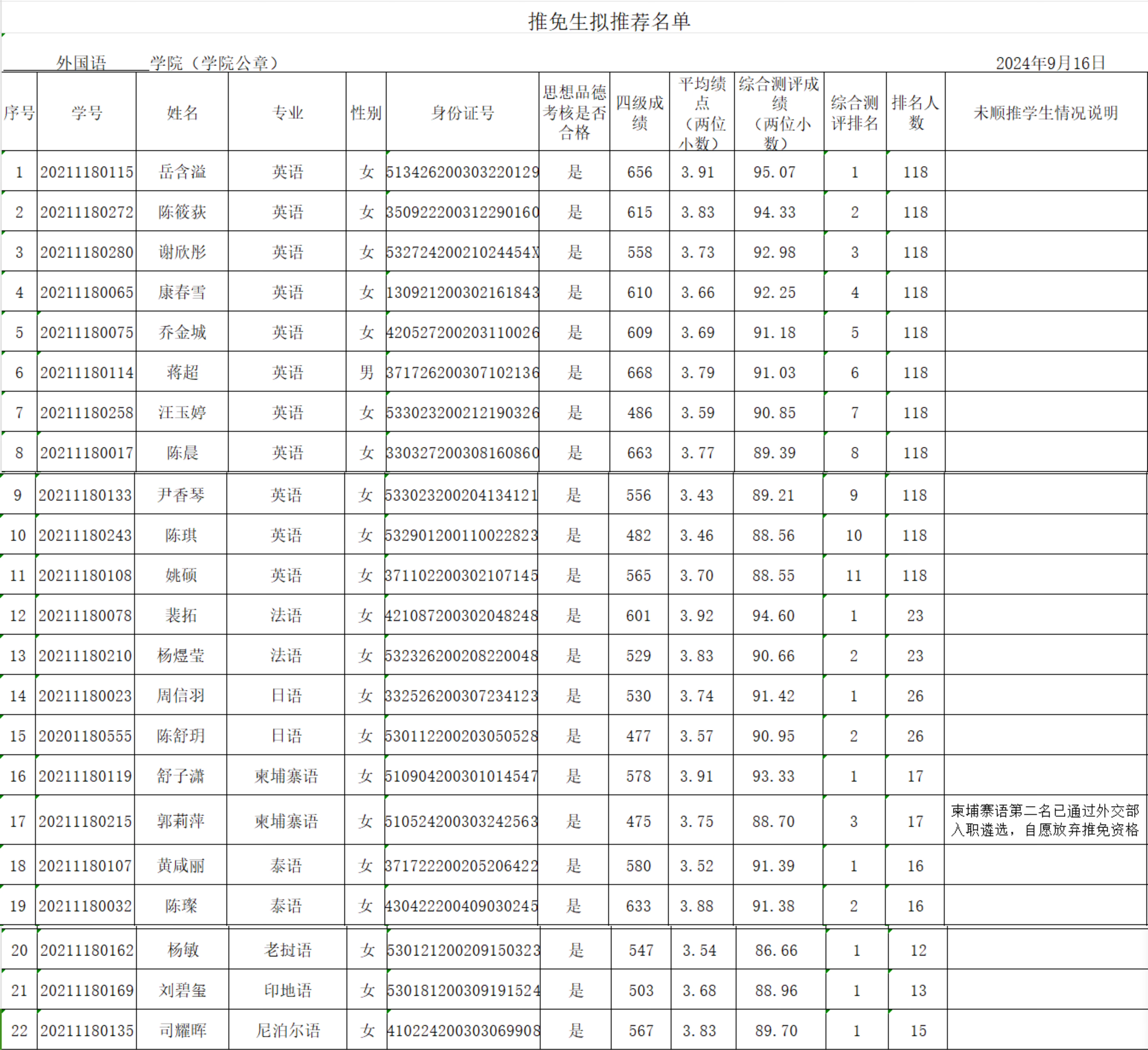 根据教育部相关文件精神,万象城官网按照《万象城allwincity官网2025年推荐优秀应届本科毕业生免试攻读研究生工作管理办法》要求,在学生本人申请、民主推荐、公开评选的基础上,学院推免生遴选工作小组本着公开、公平、公正的原则,严格按推荐条件择优确定初选名单,现将万象城官网2025年免试攻读研究生拟推荐名单公示如下。如有异议,请于9月22日前到学院办公室反映,联系电话:65034182。