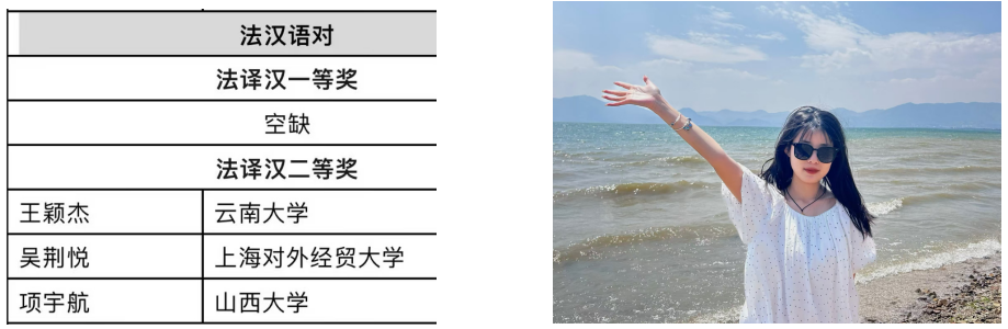 近期,万象城官网法语系研究生在各级各类大赛中荣获佳绩。10月16日,第三十六届韩素音国际翻译大赛获奖名单揭晓,2023级法语笔译研究生王颖杰同学荣获“法汉语对-法译汉”组二等奖;10月27日,2023级法语笔译研究生李倩同学获得中国外文局主办的“2024年多语种商务翻译大赛-法语组一等奖”。