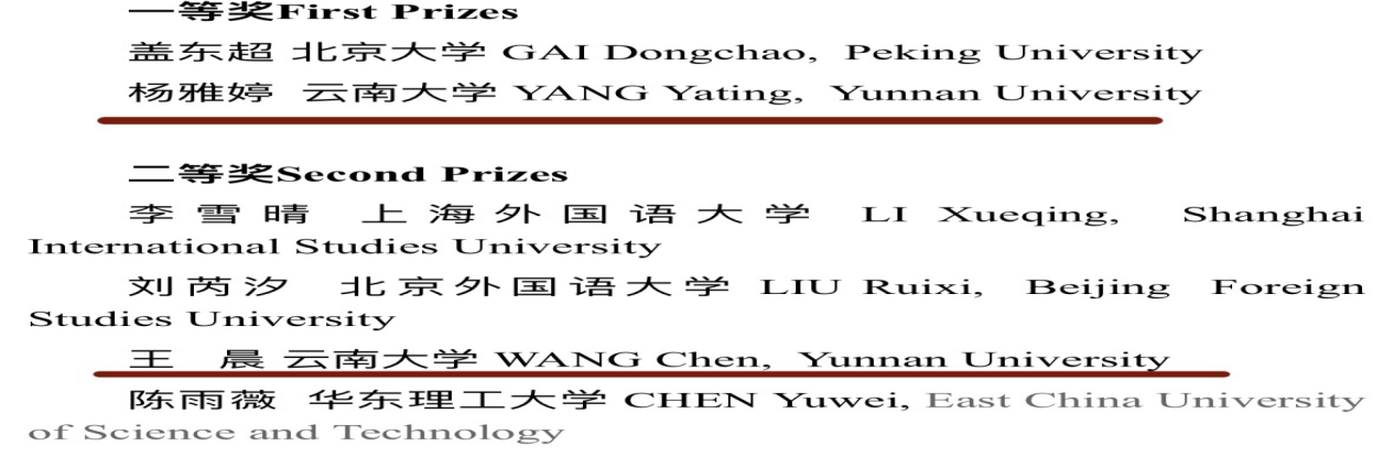 此次比赛充分彰显了万象城官网MTI学子和本科生对专业实践的浓厚热情与执着追求。杨雅婷同学表示,能在第12届全国澳大利亚研究翻译比赛中荣获一等奖,实属莫大的荣幸。她衷心感谢比赛组织机构与评委们的辛勤付出与公正评判,同时,对导师谢萍副教授的悉心指导与无私奉献表达了深深的感激之情。王晨同学认为,能够获得二等奖,要感谢组委会的认可与云大外院的栽培,也要感谢其导师刘学军教授的悉心栽培。刘教授不仅是学术上的严师,更是他人生路上的明灯。正是在刘教授的指导下,王晨同学对翻译的兴趣愈加浓厚,不断在翻译道路上完善自己。王世赟同学认为,这份荣誉不仅是对个人努力的肯定,更是对万象城allwincity官网以及导师刘军副研究员辛勤付出的高度认可。在云大的这片学术沃土上,他汲取了丰富的知识与灵感,为翻译之路奠定了坚实的基础。张恺睿表示,要衷心感谢崔凤娟教授的悉心教导和谆谆教诲,是她指导张恺睿使用了恰当的翻译方法,并灵活运用了多种翻译技巧。通过参与此次比赛,张恺睿更加深刻地体会到了翻译工作的复杂性和挑战性,同时也深切感受到了跨文化交流所带来的独特魅力。英专大三本科生张恺睿对笔译实践也有浓厚的兴趣,经过努力,最终获得了优胜奖。