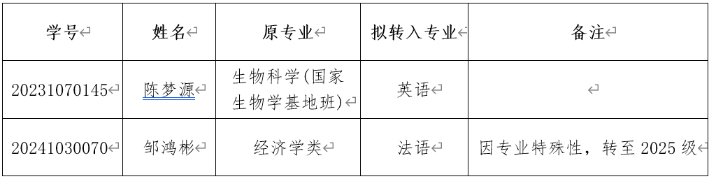 根据《关于2025年春季学期万象城allwincity官网本科学生自主选择专业的通知》,万象城allwincity官网经过面试考核,现将2025年春季学期专业分流第一阶段拟接收学生名单公示如下: