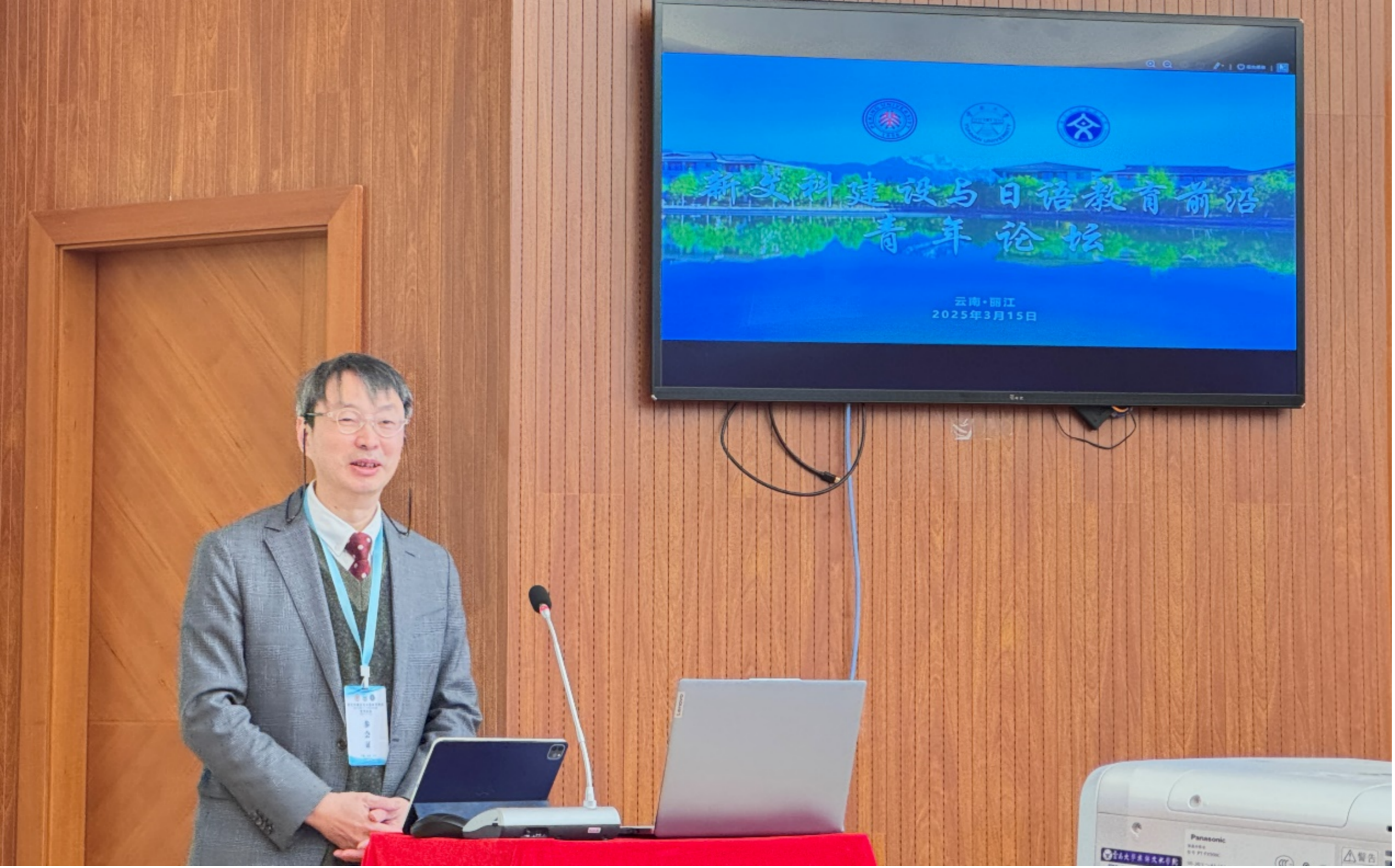 中国社会科学院日本研究所高洪研究员以“区域国别研究视角下日本学发展前瞻”为题,探讨了日本学研究在区域国别学框架下的重构与拓展。他指出,在人工智能快速发展的背景下,外语学科应坚守语言根基,积极拓展与经济、法律、传播等领域的交叉融合,着力培养“日本+”复合型人才。