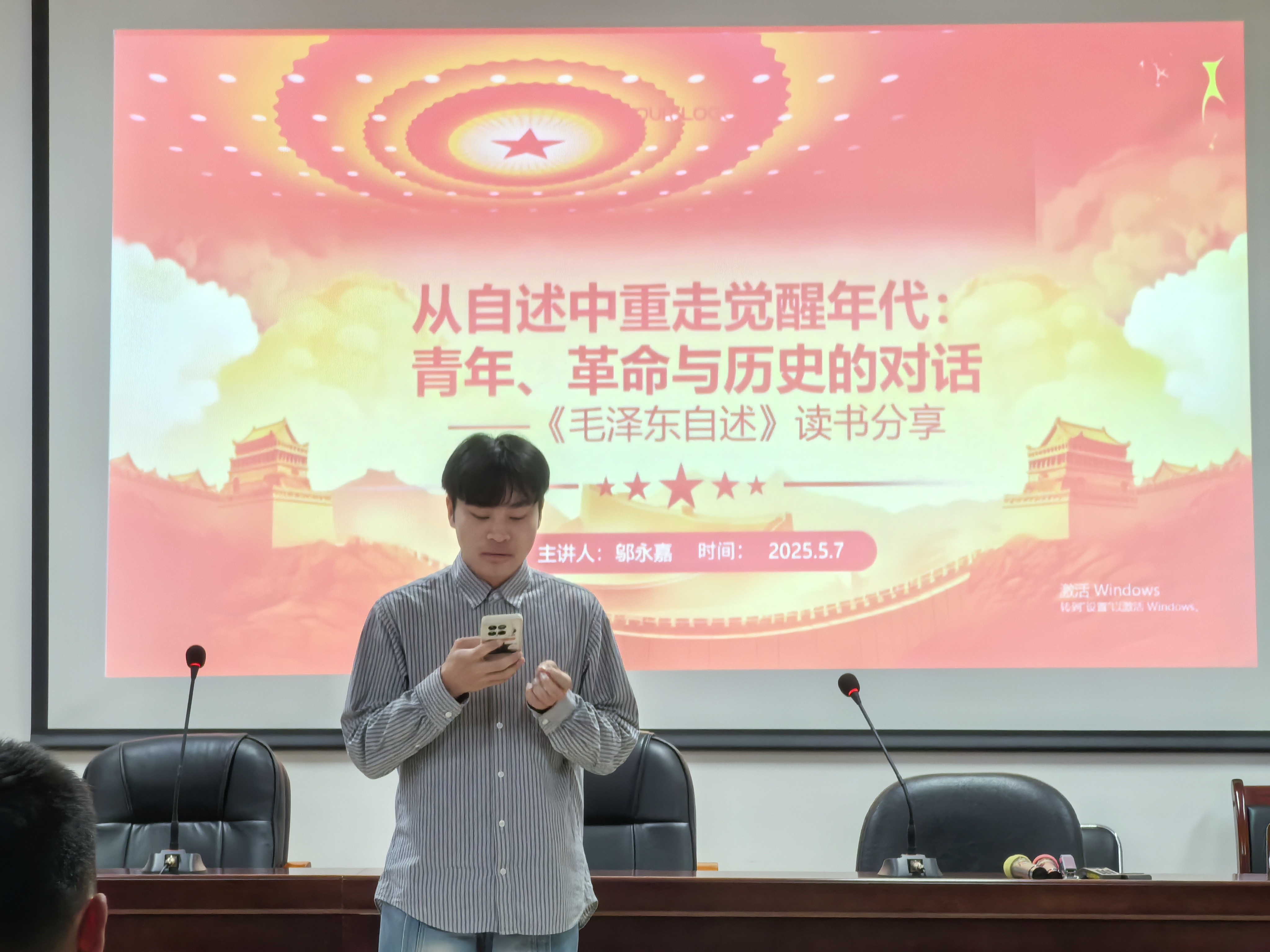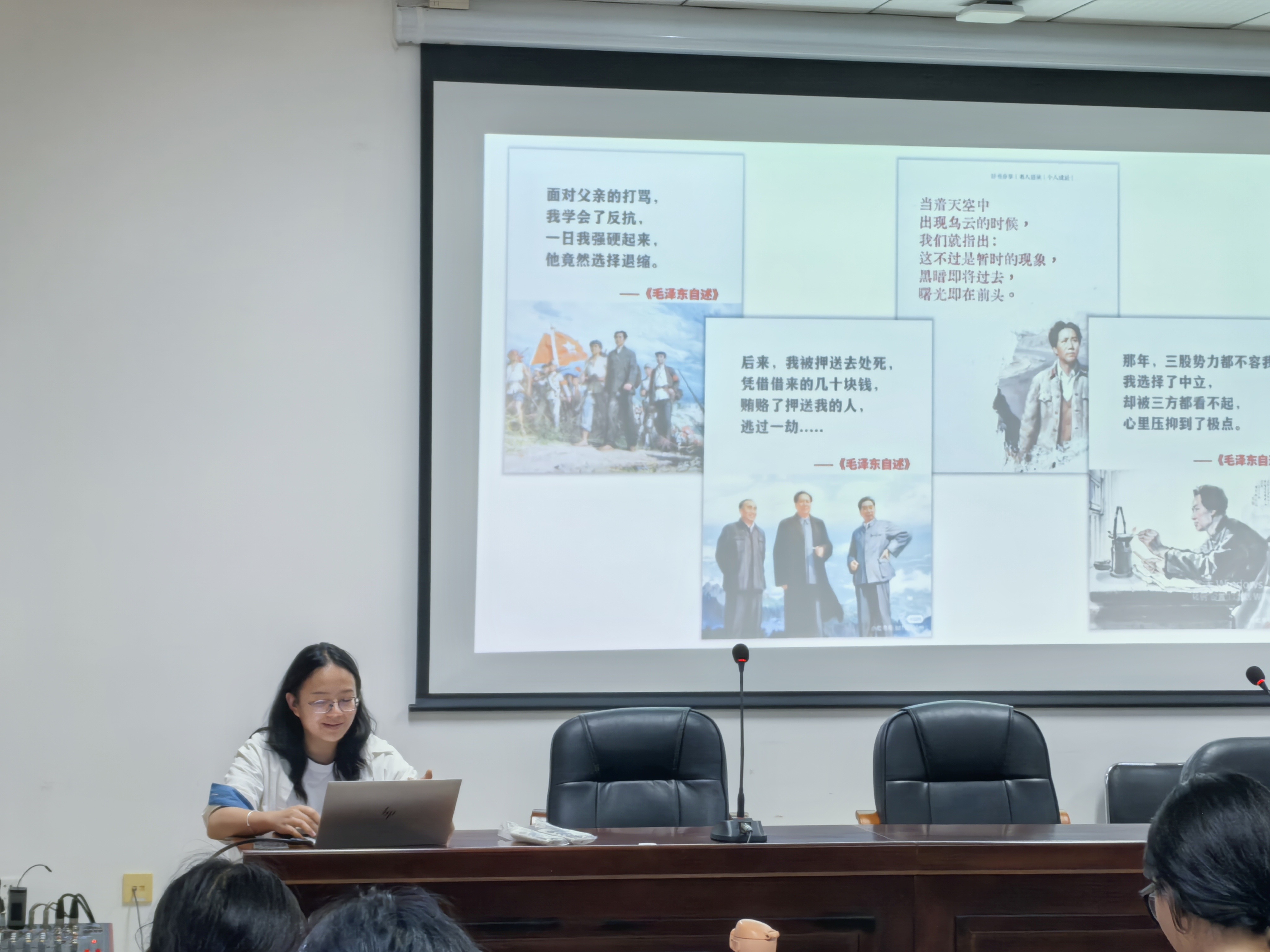活动伊始,主持人简要介绍了《毛泽东自述》的创作背景与核心价值。该书以第一视角展现了毛泽东同志从青年求学到投身革命的成长轨迹,生动诠释了其马克思主义信仰的形成过程及对中国革命与建设的深远思考。同学们通过背景学习,对书籍的历史意义和现实启示有了初步认识。