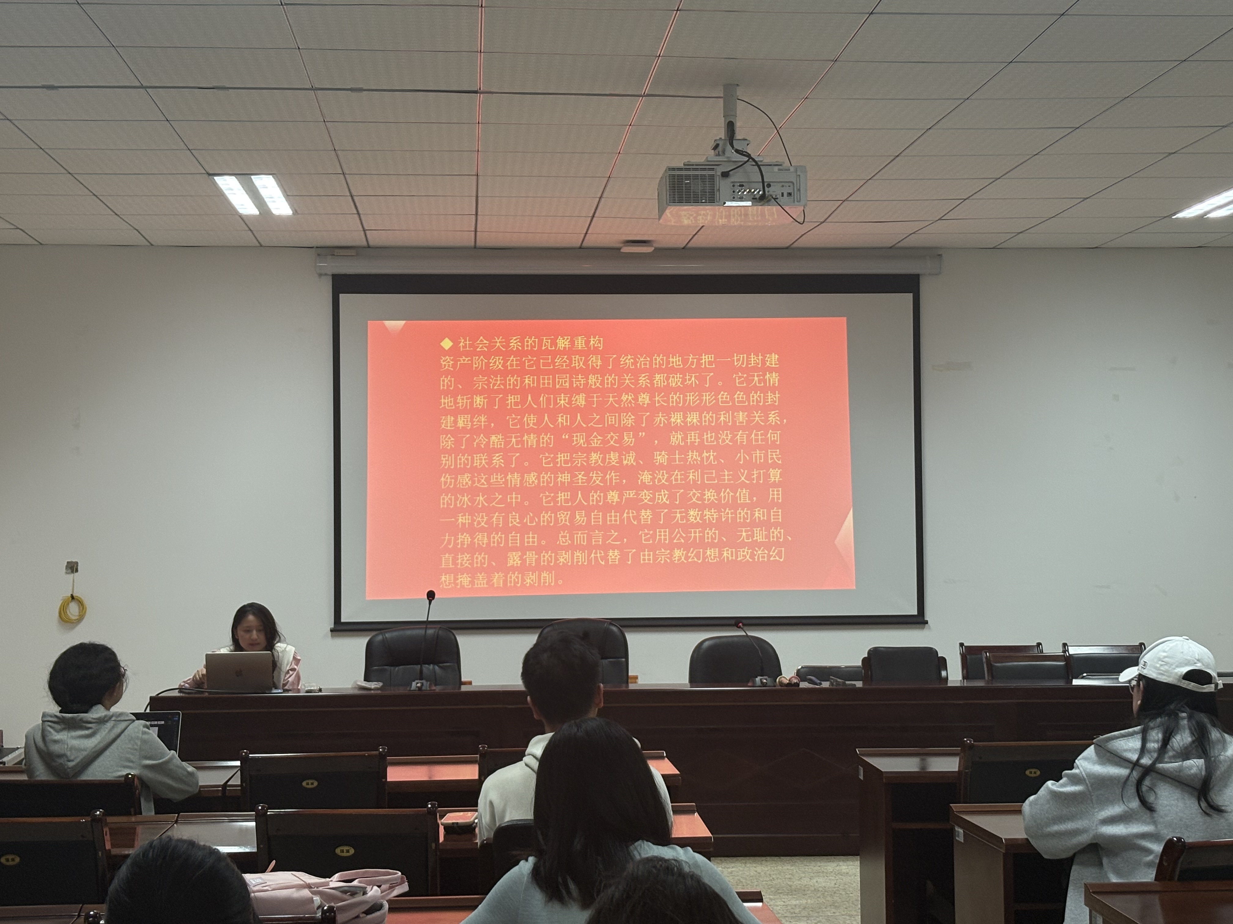 活动伊始,主持人曾伟同学简要介绍了本期读书会的主题与流程。他提到:“从文本到现实,从历史到当下,科学社会主义理论始终是理解中国道路的一把钥匙。希望今天的讨论能让我们在经典中汲取智慧,在实践中坚定信念。”