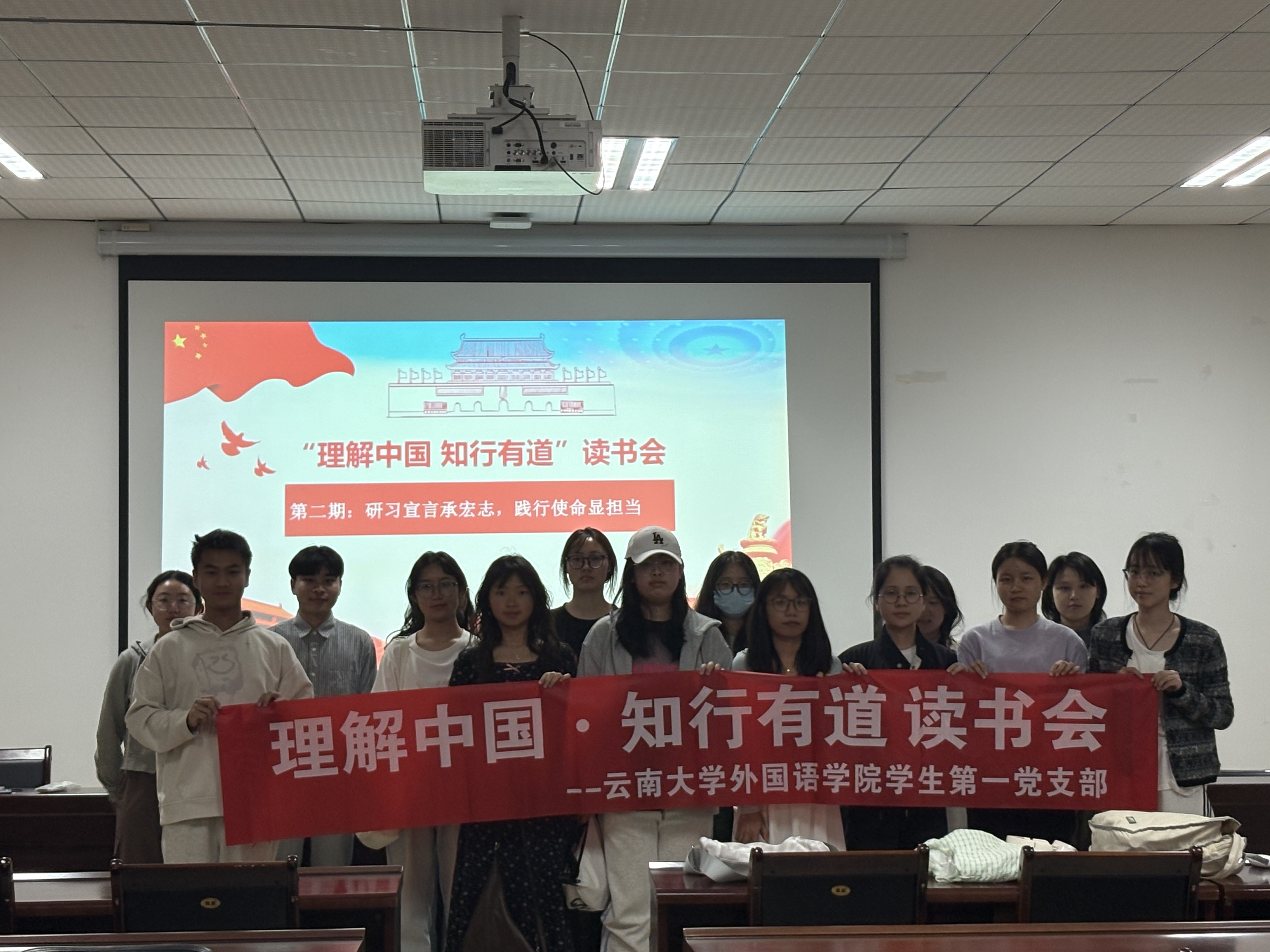 活动最后,主持人曾伟总结道:“从唯物史观到剩余价值学说,从经典文本到中国实践,今晚的讨论让我们看到马克思主义理论的生命力——它不仅是解释世界的工具,更是改造世界的指南。”在热烈的掌声中,全体参与者合影留念,镜头定格了15张青春面庞,也记录了一场思想觉醒的印记。
