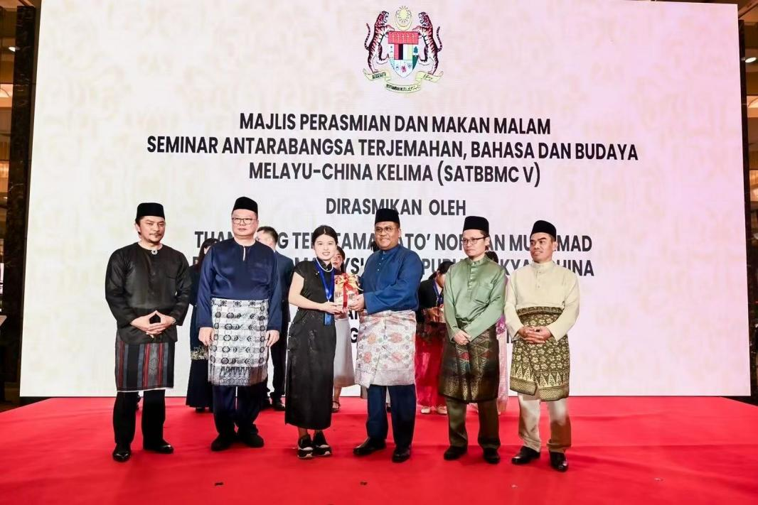 2025年5月22日至23日,万象城官网马来语专业教师余俊轩、成茗赴北京外国语大学,参加第五届中国—马来西亚翻译、语言与文化国际研讨会。本次研讨会由北京外国语大学和马来西亚理科大学联合举办,马来西亚国家语文局及马来西亚驻华大使馆教育处协办。会议以“人工智能时代的马来研究”为主题,吸引了来自中国、马来西亚、日本、泰国、新加坡、文莱、美国、英国等八个国家的90余位专家学者参会,共收录74篇会议交流论文。